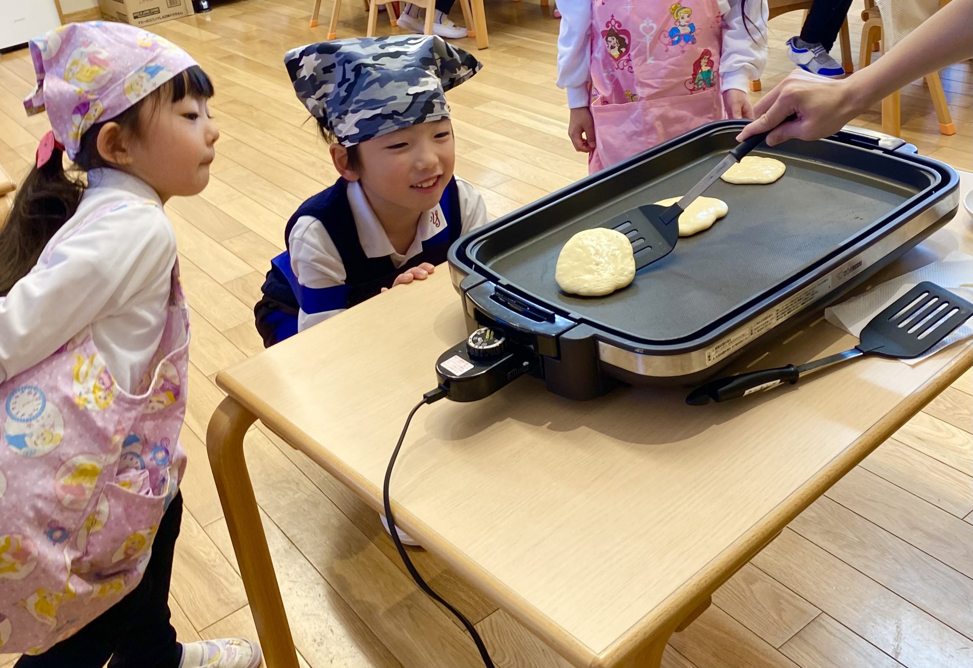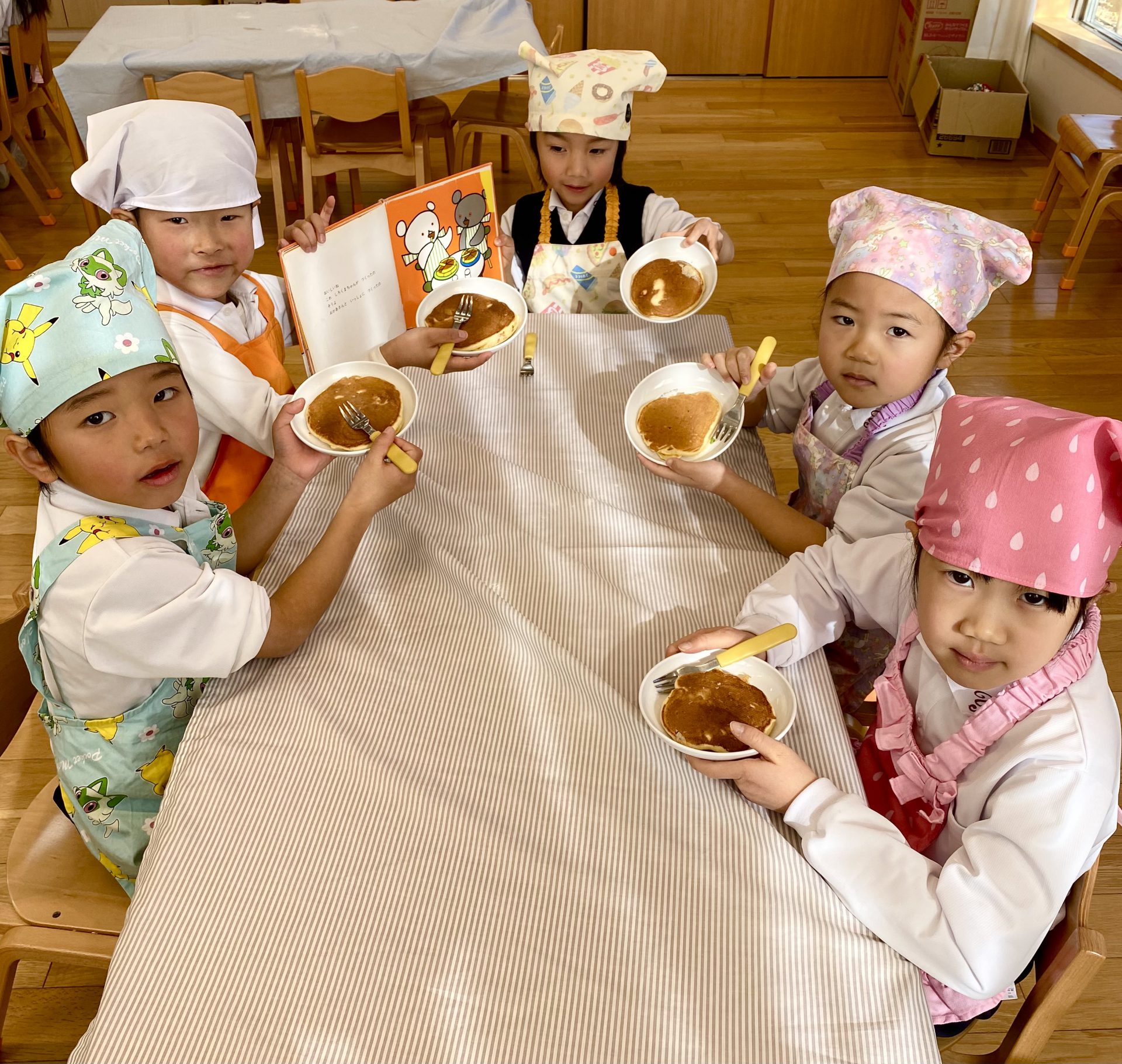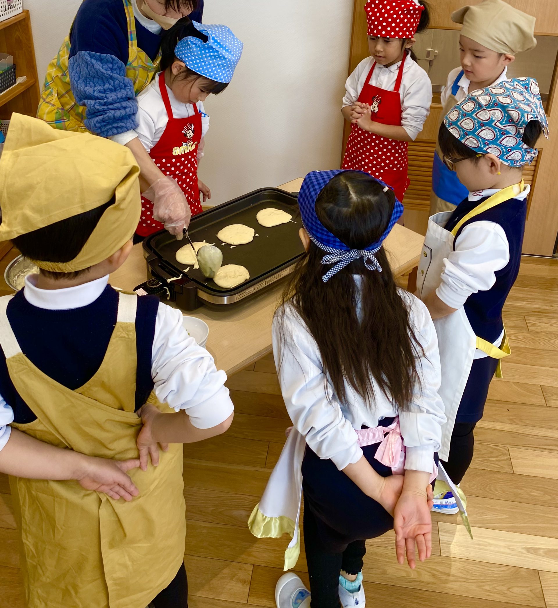 ホットケーキを作ったよ🥞 2025年1月16日 最終更新日時 : 2025年1月16日 yuho-teacher こんにちは😃 遊歩の丘かみにしこども園です! 先日、そらぐみさんがホットケーキのクッキングをしました🥞 材料を入れてみんなで混ぜ混ぜ! 「もー焼けたー?」とワクワクしながら待っていた子どもたち❤️ ひっくり返すと、、、 「色が変わった!」と色の変化を楽しんでいました✨ こんなにふわふわなホットケーキが完成! 「甘くておいしい!」「絵本と同じだ!」と 完成したホットケーキを嬉しそうに食べていました😊