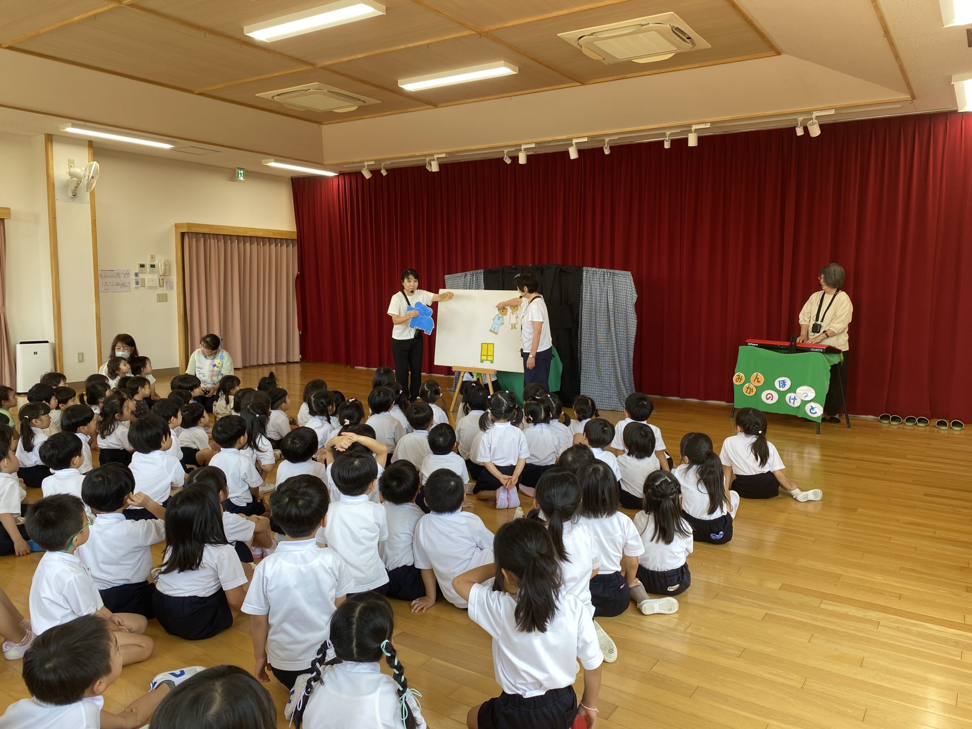 人形劇を見たよ😊 2024年7月25日 最終更新日時 : 2024年7月25日 yuho-teacher こんにちは♪ 遊歩の丘かみにしこども園です😄 かみにしこども園に人形劇の方が来てくださりました✨ どんなお話かな?とドキドキワクワクしていた子どもたち! まずは新聞を使ったお話📰 1枚の新聞紙がさまざまなものに変身しながら進んでいく物語に興味津々😍 2つめはパネルシアター! 音楽に合わせて歌ったりかけ声を言ったり… どのお話も楽しかったね♪ ありがとうございました✨