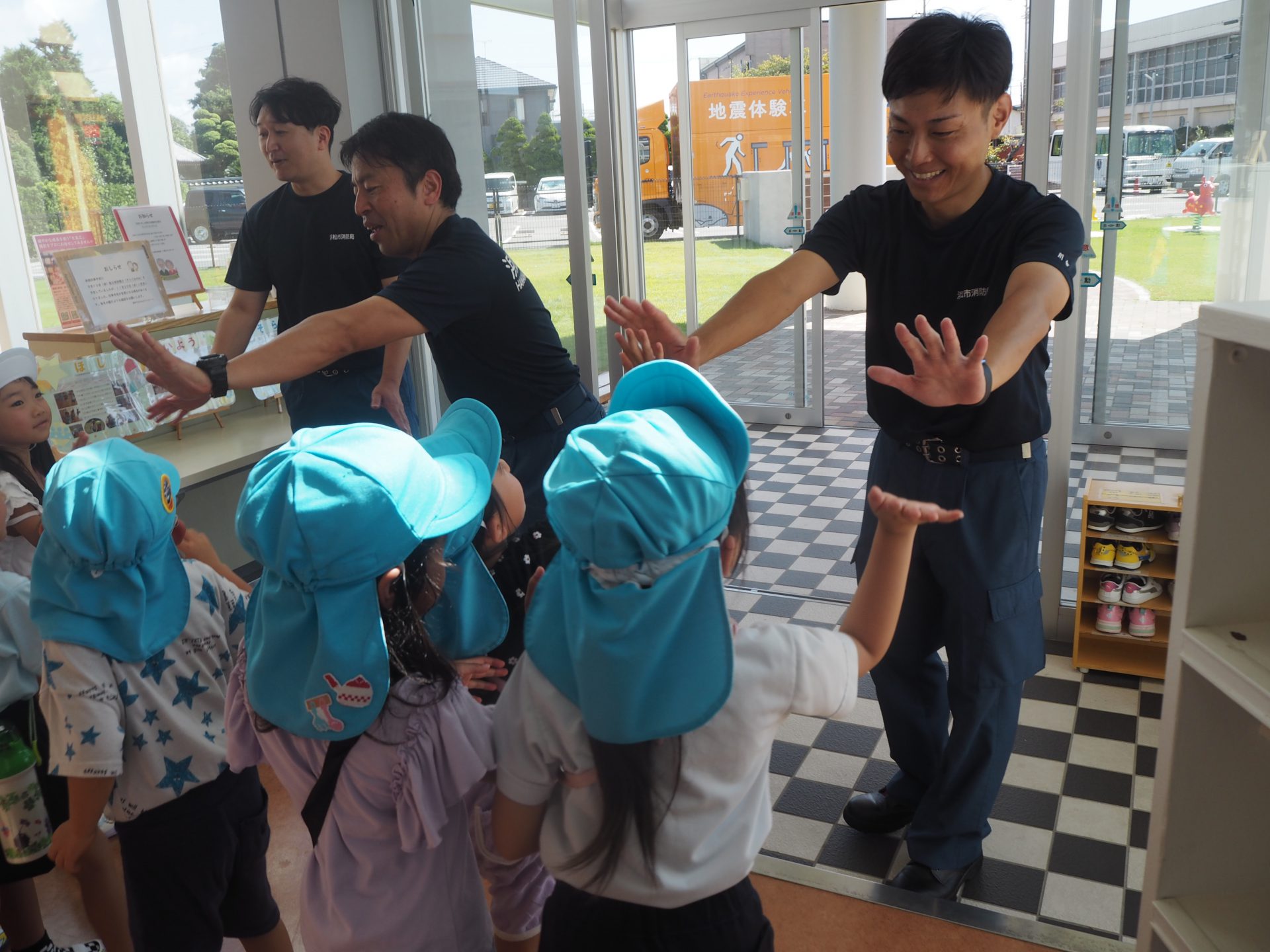 起震車「そなえるくん」がきたよ 2024年10月1日 最終更新日時 : 2024年10月1日 yuho-teacher こんにちは!遊歩の丘みなみプレスクールです。 9月17日に起震車の「そなえるくん」がきてくれました。 3歳児ほしぐみ、4歳児たいようぐみ、5歳児そらぐみ順番に体験しました。 職員は、阪神淡路大震災と同じ揺れを経験させて頂き地震の怖さを知り、ますます備えることの重要さを感じました。 消防署署員のお兄さんのお話も真剣に聞き、防災の意識を高めました。